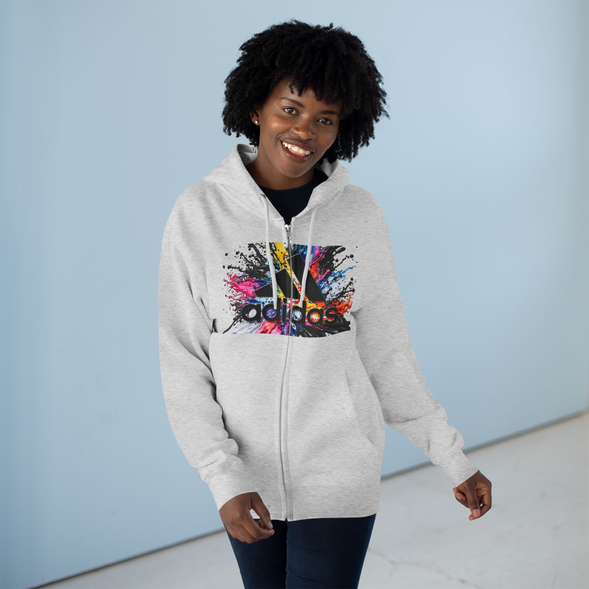 Color Splash Adidas Logo Zip Hoodie